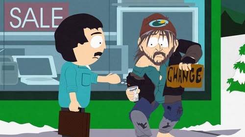 When a plague of homeless people hits South Park, the boys devise a plan to move them on whilst the adults panic like they're in a zombie movie. (S11, E07)