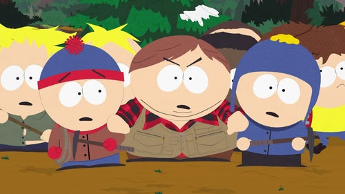 After being caught in a compromising position with Eric, Butters is sent to a special camp to "Pray the Gay Away". Cartman tries to retrieve the incriminating photo. (S11, E02)