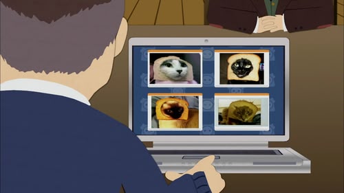 The world of internet memes is spinning out of control, leaving Cartman and Kyle racing to keep up. But what nefarious schemes do interweb cats have up their sleeves? (S16, E03)