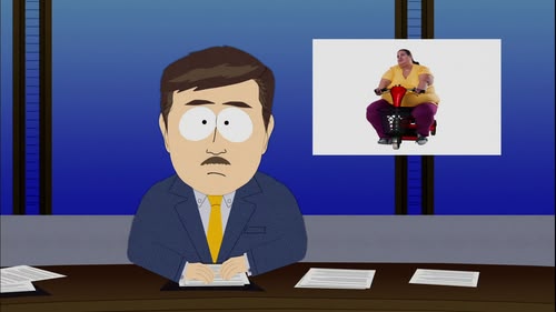 Cartman finally accepts he's more than just "big boned", entering the world of the obese and reality TV. Can James Cameron save us all from this lowering of standards? (S16, E09)