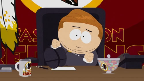 The boys decide to create a company funded through Kickstarter so that they never have to work. When they take the Washington Redskins' name, the football team see red! (S18, E01)