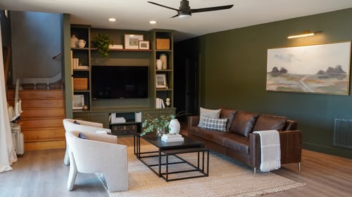 After purchasing their dream lake house, a family enlists Dave and Jenny to completely transform their boring basement into a space for entertaining.(S06,E07)