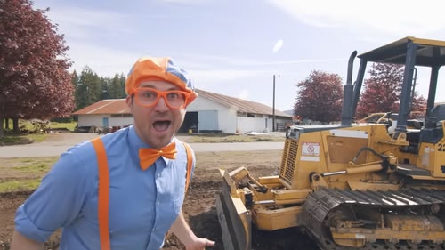 Blippi has fun pretending to be a construction worker for the day while operating huge vehicles.